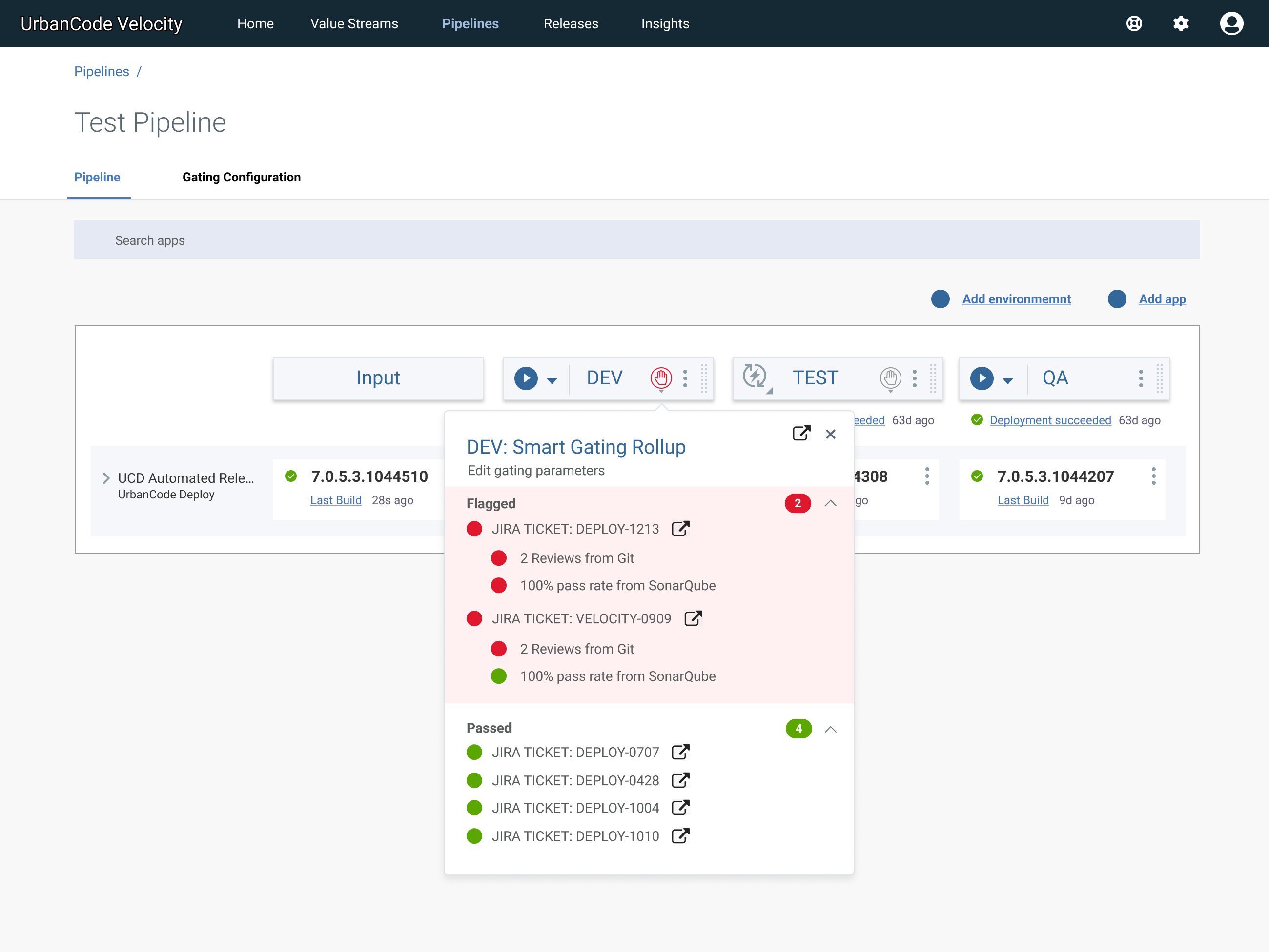 SolutionWe developed a new feature allowing users to create "gates" which gave the user granular control of which code proceeds, or doesn't, to the next environment.